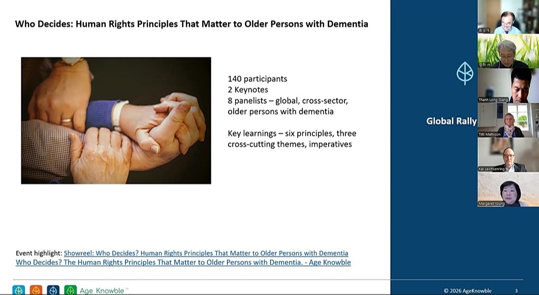 It was also noted that discussions on a UN convention on the rights of older persons are moving into the drafting stage, with an increasing role for civil society and expert networks. Addressing ageism, expanding human rights education, and promoting intergenerational engagement were identified as key policy priorities.