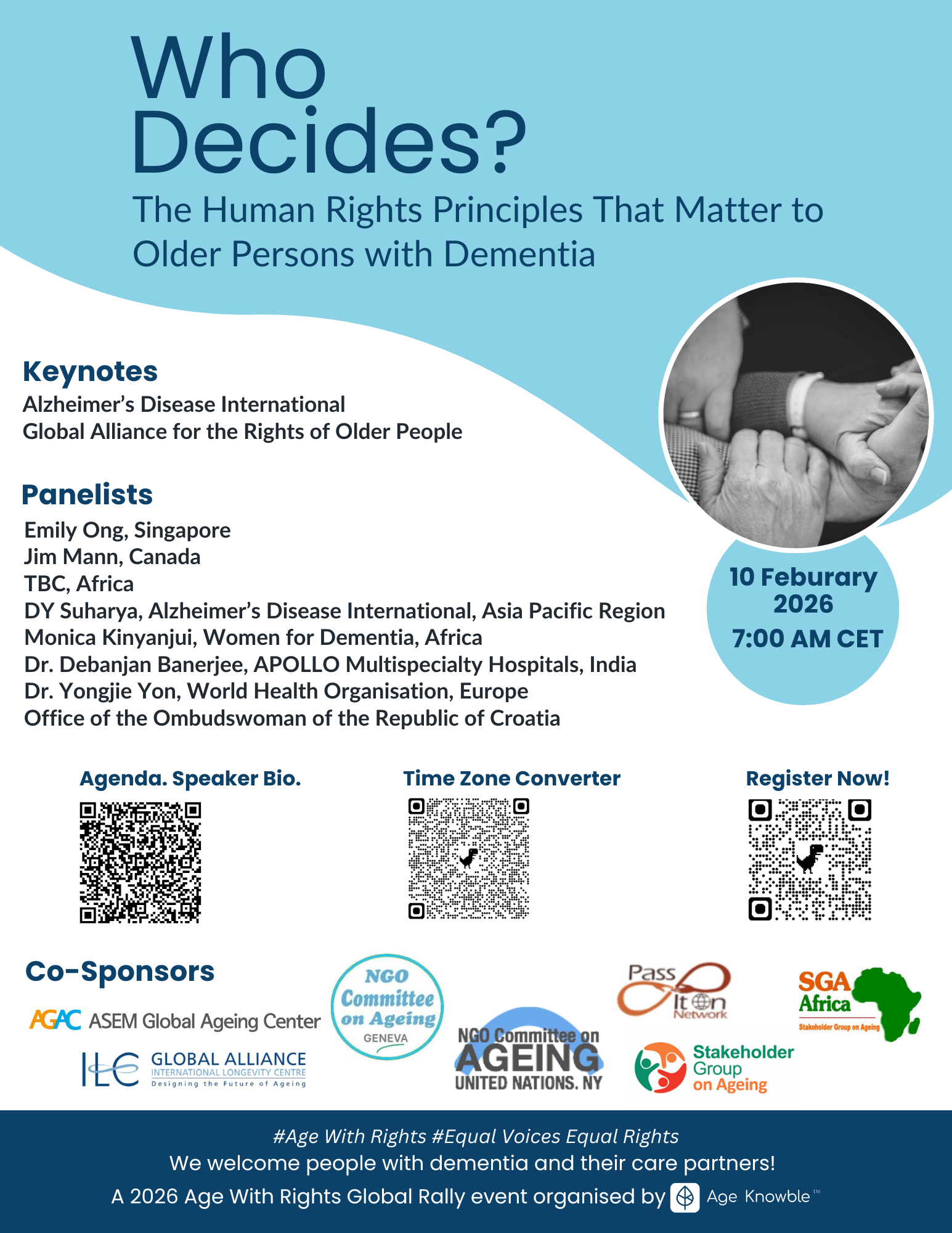 On 10 February 2026, an international online rally titled “Who Decides: The Human Rights Principles That Matter to Older Persons with Dementia” will be held, organised by Age Knowble.